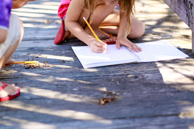 Recently we read the book Owl Moon by Jane Yolen and, per a FIAR suggestion, I took the kids on a ‘nature walk’. The idea was to act like the characters in the story- and as naturalists- by going out and observing nature. I talked about it with Ashton beforehand, and got her buy-in. The kids brought their pencils and notebooks and had a really fun time wandering around finding things to draw. Thankfully Florida is teeming with life, so in every nook and cranny there is something interesting to find and draw.