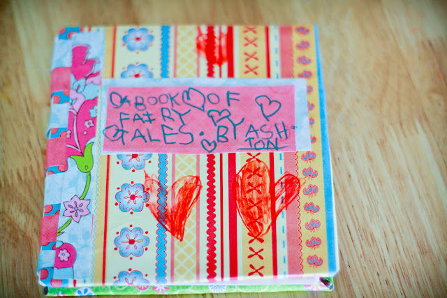 Ashton and I made a simple journal out of cardboard and paper, using this easy tutorial, so she can have a fun place to draw her pictures and stories.  It was so simple to make, and there are so many different ways to make simple books, that I think more homemade books may be on the horizon.