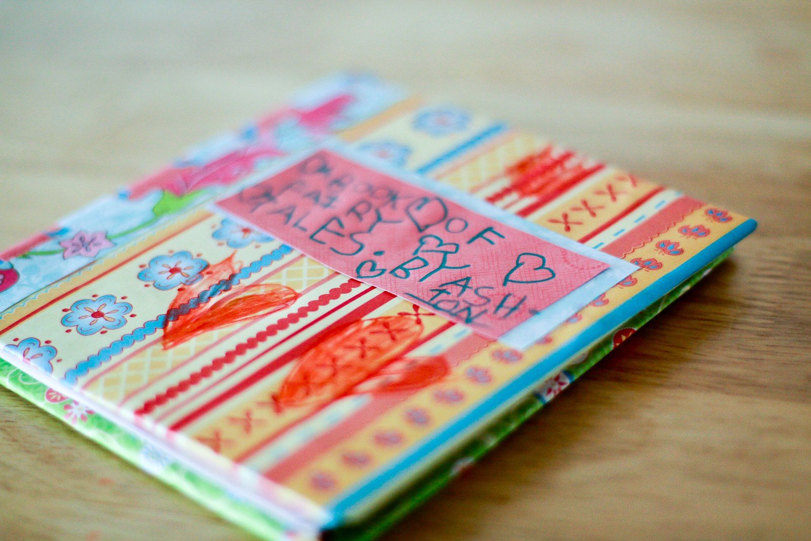 Ashton and I made a simple journal out of cardboard and paper, using this easy tutorial, so she can have a fun place to draw her pictures and stories.  It was so simple to make, and there are so many different ways to make simple books, that I think more homemade books may be on the horizon.