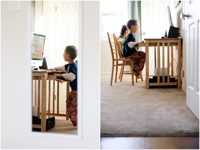 But then I realized that, for us, “quiet” happens not from walks in the outdoors or early morning sun reveling, but more often from children playing games on the internet. During computer time these two are focused on things other than being ‘bored’, getting irritated with each other, feeling hungry/tired/sick, or following mama around asking for things. For some it looks like setting the kids down to a movie (which, I confess, I have also been known to do). For me, computer time means a few minutes of quiet.