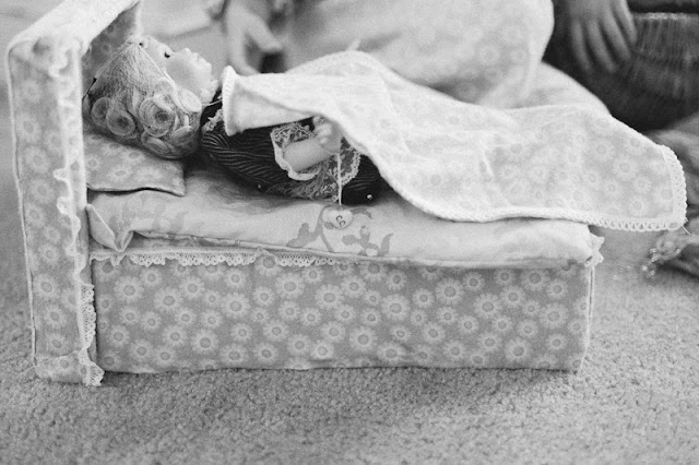 During these days of just the three of us, I’ve been focusing on doing more projects with the kids, which we all really enjoy. On this day Ashton and I decided to make a bed for her precious glass doll. With a shoebox, fabric, lace and hot glue we created a sweet little bed complete with headboard, mattress, pillow, and blanket. Ashton was so happy that day, and it made my heart happy to see my own precious little one playing with her doll.