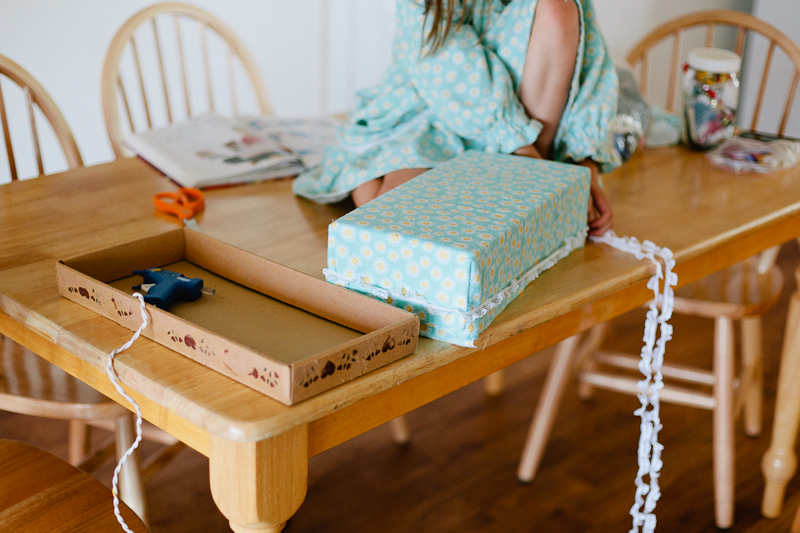 During these days of just the three of us, I’ve been focusing on doing more projects with the kids, which we all really enjoy. On this day Ashton and I decided to make a bed for her precious glass doll. With a shoebox, fabric, lace and hot glue we created a sweet little bed complete with headboard, mattress, pillow, and blanket. Ashton was so happy that day, and it made my heart happy to see my own precious little one playing with her doll.