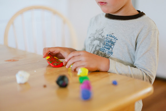 I’m pretty sure we love clay around here. It seems like the majority of my kid project posts over the years have something to do with our clay or dough creations. This project was Cedar’s idea, after we read a library book, called Mmm, Cookies!, about a boy who makes a red cookie out of clay and goes around tricking people into taking bites of it. The people make exclamative remarks about the awfulness of the taste and rinse their mouths out with toothpaste and water. Eventually the boy gets tricked into his own taste of clay cookie and in the end they all go off and make real cookies together. It is really quite silly. But our Cedar is very silly, so this book is right up his alley. He went right to work making his own red clay cookie so he can trick people into taking a bite. I’m not gonna fall for it!